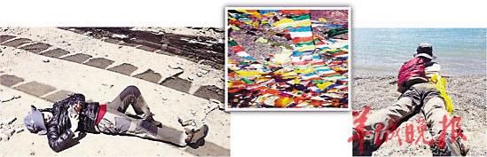 ——王菲前天在微博上载十多张在西藏旅行的照片,照片中天后为拍到美景,或躺在马路,或趴在石地上拍照,还自嘲“战地儿女影撕(师)”。