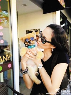 章子怡洛杉矶街头吻小狗(图)