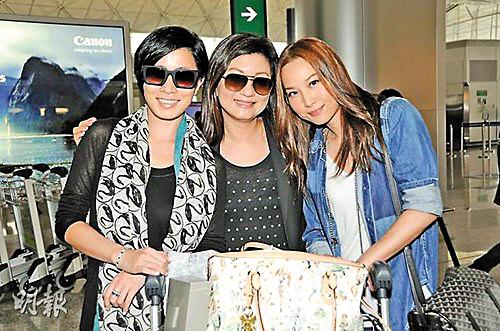 佘诗曼(左)与徐子珊(右)、无线高层乐易玲一同上京