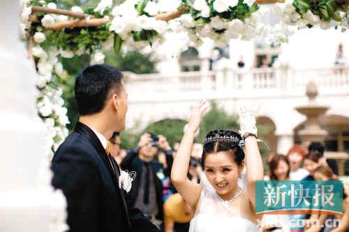 何洁婚礼现场照曝光 新郎360度拥吻新娘(组图)(2)