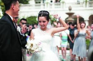 上午11时,婚礼正式开始,身穿白色婚纱的何洁挽着父亲的手臂,由父亲带着走向了新郎赫子铭。