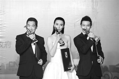 黄晓明张国立分享金鸡百花奖影帝 后台吻奖杯(图)
