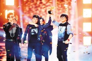 ▲第二季《中国好声音》昨晚收官,李琦(右一)凭借一首张惠妹的金曲《真实》战胜张恒远(右三),获得“年度好声音”的冠军。 (主办方供图)