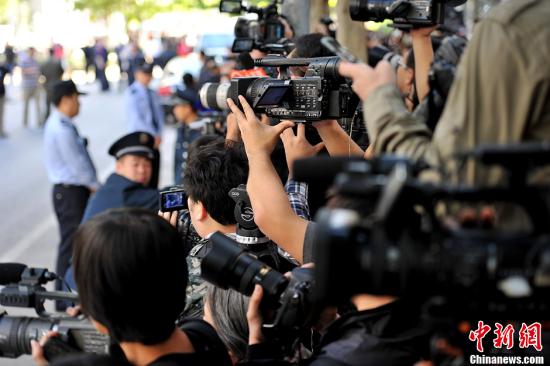 9月26日上午,北京海淀法院将对李某某等五人强奸一案进行公开宣判。当日,海淀法院门口聚集大批媒体采访拍摄。中新网记者 金硕 摄
