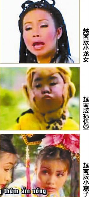 越南版《神雕侠侣》完全参照了古天乐版《神雕侠侣》,但却非常粗糙,周伯通的假发套甚至都没戴好。越南版《还珠格格》的造型也几乎和赵薇版一模一样,小燕子的表演风格也在模仿赵薇,但越南版小燕子却没有赵薇黑白分明的大眼睛,脸庞也很肿胀,丝毫没有灵性。