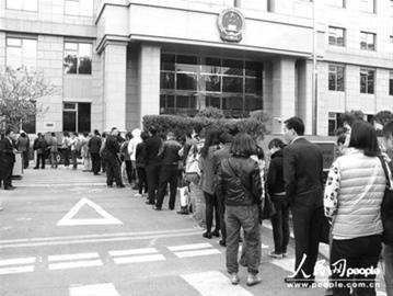 法院门前大排长龙。