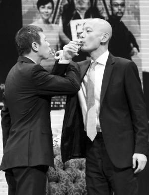 发布会最后,张国立与王中磊送上了第三份礼物:酒。张国立表示酒既象征着“男人间的友情”,也与“久”字同音寓意“长长久久”,于是在全场的鼓动下,冯葛二人喝起了交杯酒,现场气氛立即达到了最高潮。