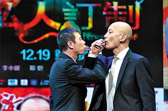 昨日,贺岁档电影《私人订制》在京举行首场发布会,导演冯小刚携主演葛优出席。好友张国立担当主持人,畅聊冯、葛二人成就20年“优质刚材”的历程。发布会开场时,刚刚签约华谊的黄绮珊献唱了一首《离不开你》,张国立笑称,黄绮珊用歌词替冯、葛二人说出了心里话,两人目前的状态就是彼此“已经离不开你,爱和恨全由你操纵”。发布会最后,冯、葛二人还喝起了交杯酒。张国立表示,酒既象征着“男人间的友情”,也与“久”字同音,寓意“长长久久”。据悉,《私人订制》已定档12月19日在全国公映。