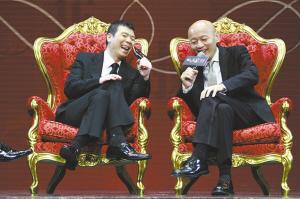 回忆合作20年乐事,冯小刚和葛优开怀大笑。