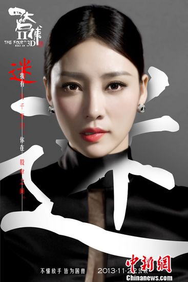 中新网10月18日电 日前,3D魔幻武侠电影《四大名捕2》曝光最新“情爱解读风尚版”海报,邓超、刘亦菲、柳岩、江一燕脱下古装戏服,换上华丽礼服,用身体语言诠释四个角色错综复杂的情感关系。饰演地宫女王“如烟”一角的柳岩,身穿一袭设计师毛华为其量身定制的全黑紧身礼裙出镜,玲珑身段凹凸有致,高开衩设计展露美腿,霸道十足。