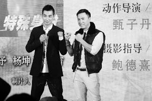 甄子丹赵文卓在《特殊身份》开机发布会上。 (资料图片)
