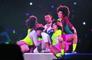 除了歌迷大合唱,刘德华在舞蹈上也是非常不服老,在《凭什么》中和伴舞大跳迈克尔·杰克逊式舞步,最后累躺在舞台上说:“这种舞真不是我这种年纪跳的。”