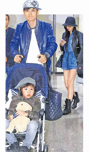 林志颖一家三口机场亮相 妻子美腿抢镜(组图)