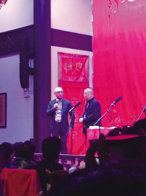 要问“德云社”在南京的受欢迎程度,看看票务的销售情况就知道了。“早几天,这两天的票就卖完了。”郭德纲说,这两天的演出中有岳云鹏、刘鹤春、郭麒麟等德云社“大将”亮相,而他本人除了昨晚的开业演出,今明两天也依然会出现在舞台上,“三天,比原计划加演一场!今明后,都来为南京人演出”。