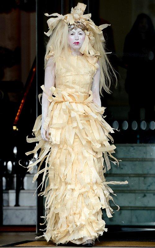 Lady Gaga穿"木刨花装" 满身面粉似"妖妇"(图)