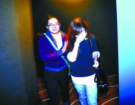昨日,电影《爱情天梯》首映,一女观众观影后落泪。 本版图片记者 李化 摄