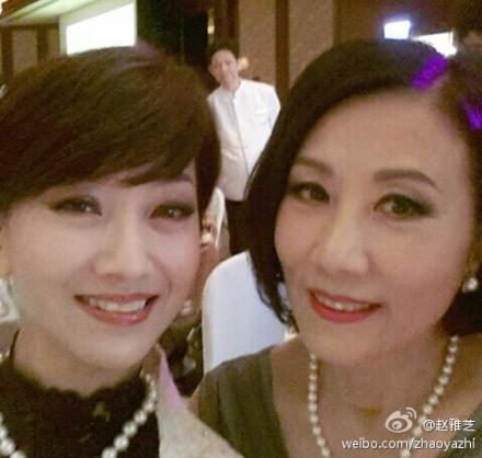 赵雅芝在微博中写道:“明周45周年庆,和Lisa来个自拍!还有小青妹妹和小凤姐姐同拍的,在谁的手机那儿?求发我!”