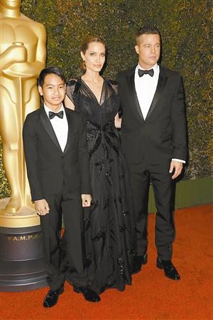 朱莉获奖皮特携子助阵 皮特短发造型显年轻(图)