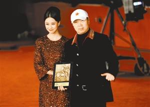 《蓝色骨头》导演崔健与女主角倪虹洁携手领奖。