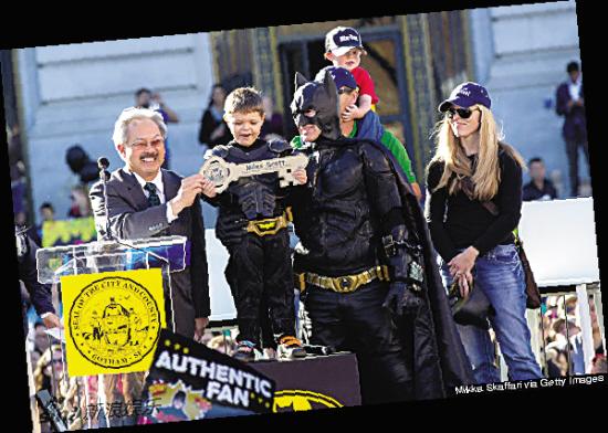 为了帮患白血病5岁男孩迈尔斯实现做蝙蝠侠拯救世界的梦想,11月15日旧金山变成了“哥谭市”,上万志愿者配合出演,“蝙蝠侠”迈尔斯坐着警方护送的兰博基尼穿越城市,完成英雄救美、勇抓劫匪、救吉祥物等任务,最后受到华裔市长李孟贤的表彰。美国总统奥巴马夫妇也在社交网站上留言,鼓励迈尔斯“除恶”。在一段事先录制的短小视频中,奥巴马说:“加油,迈尔斯!去解救高谭市。”网友纷纷大赞:倾尽全城之力帮一个孩子圆梦,很久没看到这么温暖的新闻了。
