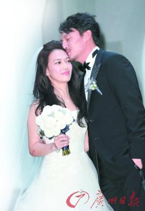 张震亲吻新娘。新娘庄雯如选穿婚纱女王VERA WANG的订制婚纱,婚纱价格60多万元,搭配订制头纱,大约70万元,颜色则挑选象牙白。