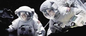 《地心引力》中,在空间站工作的宇航员马特·科沃斯基(乔治·克鲁尼饰)以及新手赖安·斯通(桑德拉·布洛克饰)出舱工作时,飞船与空间站发生爆炸,同行丧生,两个人在缺氧、失重、与外界丧失联系的情况下最终获救。