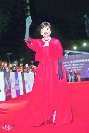 年轻时就娇俏可爱的甄珍,如今体态发福,但胜在气色不错,粉色两件套裙装衬得她皮肤更加细嫩。而她为金马特意减肥7公斤,订制了3套礼服。