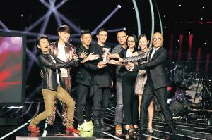 《我是歌手》一炮而红。图为7名唱将与导演留影。