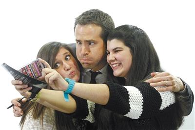 11月25日,温哥华,科洛·莫瑞兹赶拍新片《如果我还活着》,与男演员扮鬼脸。