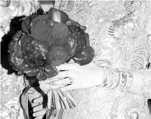 婆婆为媳妇汪圆圆戴上一串12对龙凤手镯。