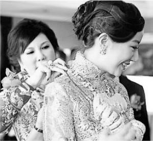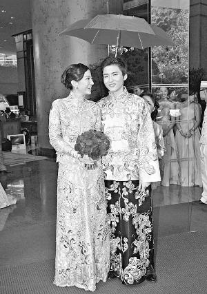 前日中午,汪圆圆与蔡加赞穿上中式礼服现身。
