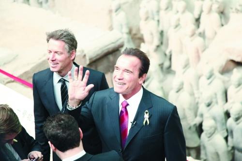 虽然前晚才乘机抵达西安,昨天上午9点20分,施瓦辛格一行人就不顾舟车劳顿开始向西安临潼兵马俑进发。
