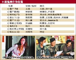 上世纪80年代,僵尸片在香港及海外盛极一时,而今年麦浚龙执导的《僵尸》,以新科技带来僵尸片的新视野,再度掀起僵尸片热潮。各家片商争相开拍以僵尸或妖魔为题材的电影,包括王晶执导、郑中基与元彪主演的《僵尸TV》,台湾导演钱人豪执导、安志杰与Jessica C。演出的《僵尸斗士》已在热拍中;明年彭浩翔计划请周杰伦主演《湘西赶尸》,林家栋会监制一部由林德信演出的《僵尸劏房》,刘观伟会开拍《吸血女王》等,预计将有9部鬼神题材电影出笼!