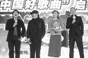 周华健、刘欢、蔡健雅和杨坤四位导师亮相大型原创音乐评论类节目《中国好歌曲》发布会。