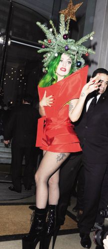 而以上两个造型并不是最出位的,当地时间12月8日,Lady Gaga来到伦敦参加Jingle Bell Ball演唱会,当天下午Lady Gaga就在其入住的宾馆附近“惊艳”众人。大胆撞色的搭配,加上发着绿光的墨镜,配上性感惹辣的内衣装(图3),Lady Gaga可谓将波西米亚风进行到底。○陈明明