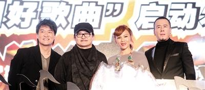 《中国好歌曲》四名导师在发布会上合影。
