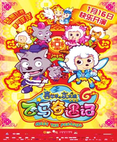 “喜羊羊”系列电影第六部《喜羊羊与灰太狼之飞马奇遇记》将于明年1月16日起在全国上映。飞翔是贯穿该片的主题,不但飞马王子和蓝马公主会飞,羊羊们会飞,就连灰太狼一家也全都飞上云霄。