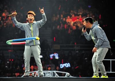 羽泉在演唱会上玩起了呼啦圈。新京报记者 郭延冰 摄