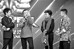 ▲撒贝宁、周立波、蔡明、李连杰(左至右)在《出彩中国人》录制现场。 (资料图片)