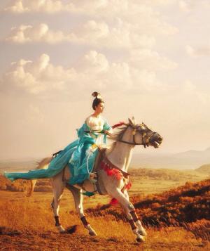 范冰冰开通微博首日并给粉丝送上大福利。范冰冰首度曝光了电影《杨贵妃》的剧照。照片中范冰冰饰演的杨贵妃身穿浅蓝色的长裙,飒爽英姿地骑着白马,裙裾在风中飘扬,显得格外霸气,不失范爷本色。辛佳