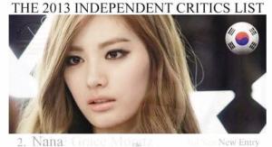 知名电影网站TC Candler每年都会公布“百大最美脸蛋”票选,而2013年票选结果出炉,法国影后玛莉咏柯蒂亚(Marion Cotillard)夺冠、第二名则为韩国女团After School成员Nana,荣登亚洲女星最美。另外,少女时代成员金泰妍、miss A成员裴秀智、宋慧乔与刘亦菲则分占第9、14、24及50名。然而去年唯一进榜的大S今年则遗憾跌出榜外。