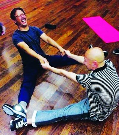 两人目前一起合作姜文执导的新作《一步之遥》,在姜文生日当天,两人一起乐呵呵地练劈叉,这样的庆祝方法可真新潮!