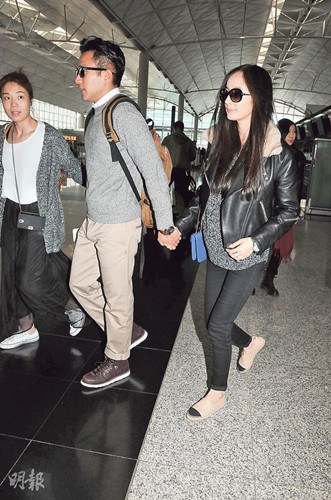 中新网1月8日电 据香港《明报》消息,今日是刘恺威与杨幂的结婚大喜日子,一对准新人昨日携同刘恺威父母刘丹与太太,一家四口现身机场,出发前往巴厘岛举行婚礼。刘恺威和杨幂这对准新人,齐齐带黑超晒恩爱,人前十指紧扣一副幸福模样。盛传怀孕的杨幂,她仍穿着平底鞋,虽穿宽松衣服仍看出肚皮微隆。
