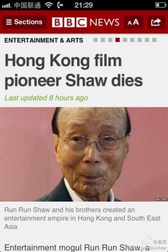 北京时间1月7日消息,香港电影大亨邵逸夫爵士于当地时间周二去世,各大国外媒体也第一时间发文,悼念这位亚洲传媒业的大亨、电影业的先驱者、功夫电影的缔造者。