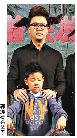 国产真3D卡通大电影《熊出没之夺宝熊兵》于12日在京首映,导演刘富源携郭涛、石头父子一同亮相。昨日,郭涛爆料石头是《熊出没》的超级粉丝,最喜欢的角色是光头强。说起最喜欢的情节,一向腼腆的石头竟然说到兴奋,多次打断老爸把故事讲完。