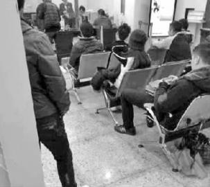 网友“黑Y_Y是聪明的nana”在微博中曝光一张照片,疑似汤唯(画圈处)坐在银行大厅等候区的椅子上