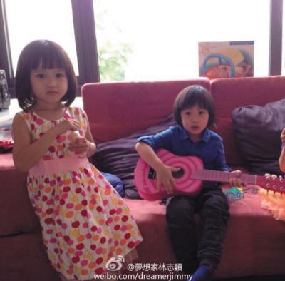 12日18时,林志颖通过微博上传一组kimi和钟丽缇女儿小考拉的可爱萌照,并称:“想起当时kimi弹吉他给小考拉的可爱模样,超萌啊!”照片中,kimi坐在沙发上,双手拿着粉色吉他,有模有样的为钟丽缇女儿认真的演奏,钟丽缇女儿穿着碎花长裙,留着可爱的波波头,大大的眼睛,非常漂亮。网友们忍不住称赞:“真是金童玉女啊!”