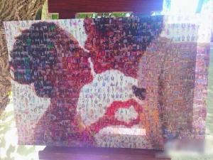 ▲婚礼现场用各种照片堆出陈思诚和佟丽娅的婚纱照板。