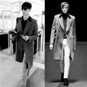 近日,张亮恢复模特老本行,前往米兰出席秋冬时装周。男神全身上下的穿着打扮自然不能马虎,而有眼尖的网友发现,张亮穿着的一件蓝色大衣再次与《继承者们》中金叹的扮演者李敏镐撞衫。其实,之前张亮就穿过和李敏镐同款的毛衣撞衫,两位大长腿男神再次撞衫,也同样让粉丝花痴不已。