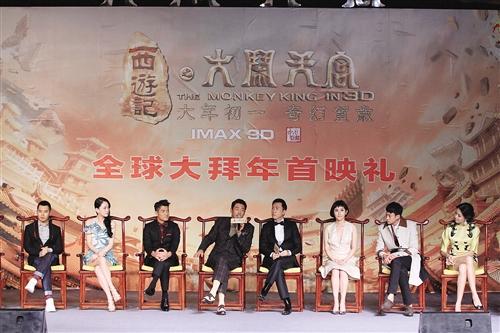 2014年大年初一,魔幻IMAX-3D神话巨制《西游记之大闹天宫》将贺岁上映。昨天,该片在北京举行全球首映礼。影片导演郑保瑞、制片人刘晓光和主演甄子丹、周润发、郭富城、何润东、海一天、夏梓桐、陈乔恩、张梓琳、郑家星、刘桦组成史上最强阵容,现身发布会现场。发布会中,玉帝周润发亲自加封甄子丹是“宇宙最强美猴王”。